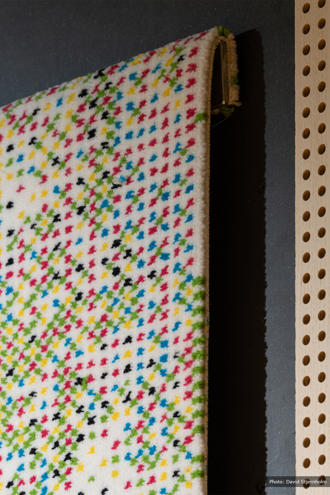 CPH Pulse is not the first time Ejlerskov and Dansk Wilton have been on an artistic adventure together. For her exhibition The Cult of Oxytocin at Nikolaj Kunsthal, we co-created 5 beautiful carpets which was a vital part of the Upper Gallery and an additional 6 carpets that could be found hanging from the walls in the gallery.
